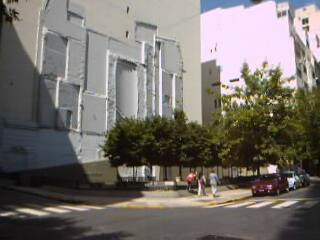 At the end of the short Arroyo St. we find the impront on the wall, of what used to be a small peautiful palace-like building, demolished by a single bomb blast on the morning of March 17 1992: these are the remains of the embassy of Israel, where 22 people died. The naighbouring buildings were shattered to pieces and glass windows were broken around the block. The glass-covered high-rise building right across had to be evacuated and repaired and scaffolding was withdrawn only recently.