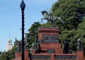 Still talking about the Plaza San Martin, there are several statues and monuments in it, namely the Statue of San Martin himself (inaug. 1862) by french sculptor Louis Joseph Daumes and technically remarkable because of the fact that the whole weight of the statue is supported by the horse's hind legs. The hero's finger is actually pointing towards the Andes, where he achieved one of the major feats of the independence war to free Argentina, Chile and Bolivia. The pedestal structure was added by the german sculptor Gustaf Eberlein 50 years later (1910). Don Jose de San Martin was a truly great man, a liberator and a man of virtue and integrity. He was born in Argentina, studied in Spain where he achieved a brilliant military career, and came back to his native land to help free the whole region, assembling an army and crossing the Andes with his army in just a few days in conditions of extreme difficulty. He was a caring family man and rejected the power he was offered, to take care of his daughter and grandchildren (he exiled himself in France, as we will see later).