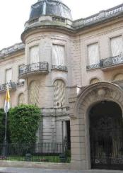 Now we are back in Alvear street to see Hume Residence, Duhau Palace and Fernandez-Anchorena Mansion (now Vatican Embassy). The Duhau's neoclassic french residence was built in 1932 for the wealthy and aristocratic Duhau brothers, whilst the Hume/McGuire Residence is one of the first and oldest buildings in this old residential state area (1890). It is in this palace that the first private collection art exhibitions took place in BA. There were more palaces here when I was a boy (like the DeRidder Family one, which always had a live pair of sheep, one white and one black pasturing freely along the front garden!), but they have been turned into the large building at the back of the Caesars Park hotel which faces the Patio Bullrich mall on the opposite side of the block). In the corner you can appreciate the Nunciature Palace (Vatican Embassy), which originally was the house of Mrs. Rosa Anchorena and Juan A. Fernandez built in 1909 and never used, for they decided to move to Europe and never came back. While the Argentine President Maximo Torcuato de Alvear (this street is named after him) was in charge of the presidency (1922-1928) he lived here and then in 1930 it was sold to Mrs. Adelia Harilaos de Olmos who would finally donate it to the Vatican in 1949 (Popes stay here when they visit). Mrs. Olmos got knighted a Pontifical Marchioness (femenine for Marquise) by the Vatican for her piousness (she had been awarded her pontifical title after donating to the Argentinian Curia her luxurious mansion in Recoleta where Pope Pius XII -still a cardinal by then- had lodged during the International Eucharistic Congress in 1934). Moreover, the magnanimous Marchioness -also benefactress of the Basilica of the Miraculous Medal in Parque Chacabuco- had even sold the couple's ranch called "La Sofia" to finance the Eucharistic Congress to be held in Buenos Aires). The inside and gardens (still here) were so luxurious, legend has it that some church authorities refused to stay here, for he thought it would be too ostentatious. Mrs. Olmos was also famous for having several unfriendly political run-ins with evita Peron between 1945 and 1950.