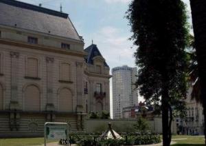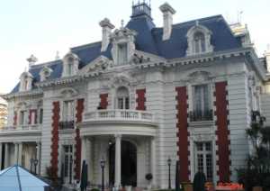 By now we should be standing in front of the Anchorena Palace (now called Palacio San Martin and used for the Ministry of External Affairs). Anchorena Palace was built in 1906 by Alejandro Cristophersen ( 1866-1946). It is a unique complex of three private houses, (the floor plans are harmonized and there are two common rooms, yet basically no house repeats features of the two others), their construction was inspired in French neo-classic architecture of the XVIII th. century. It originally belonged to Anchorena family, built on the very heart of the most elegant residential area between 1906 and 1909 by architect Alejandro Christophersen, who was commissioned by Mrs. Mercedes Castellanos de Anchorena and her two sons, Aaron and Emilio. It is a single building containing three separate residences encircling a large central patio. Its structure brings together elements from French academicism and from the Borbonic style. Major features are the iron and glass balcony overlooking Basavilbaso Street, and the facade's iron gates, highlighting the importance of the residence from its access point. The Anchorena Palace was the setting for major social events, such as the Ball held for the Independence Centennial in 1916. In 1936, it was purchased by the Argentine State to become the headquarters of the Ministry of Foreign Relations. Nowadays, it has become the protocol quarters of the Ministry, since the offices have been moved to the new building in Arenales and Esmeralda, built by architects Aizenstat and Rajlin, whose architecture seems to converse with the monumental masterpiece by Christophersen. The San Martin Palace is a national historic monument and holds a vast library specializing in international law and the history of international relations. It stands as a valuable testimony of the heights reached by French classicism architecture and by the adaptation of certain kinds of 18-century French residences to the local media. The Anchorenas would have had a direct view of the magnificent church Mercedes Anchorena had built, not far across the park, amidst her wealthy neighbours palaces, had it not been for Corinna Kavanagh's mix of revenge, whim and daring vision.