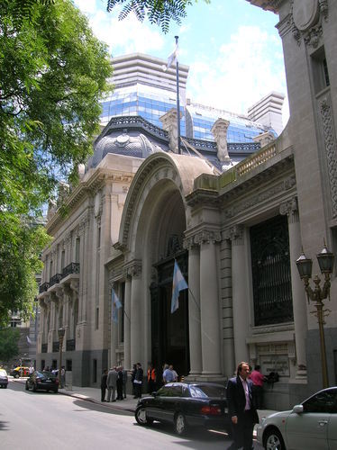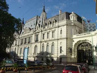As we move on across the Plaza San Martin we can see two Palaces: the smaller one with triangluar footprint belonged to the Haedo family and is now site to the National Park Administration entity. It was built in the 1880's, being amongst the first in the upcoming elegant neighbourhood but was then dwarved by the neighbouring mansions, like the magnificent one which is now the social headquarters for the military. It was built in the 1900's by the rich landlord and newspaper owner Jose C. Paz (he founded "La Prensa" newspaper, a major player until not long ago, whose magnificent building you can view near Plaza de Mayo). The palace was totally designed and imported from France and took 12 years to complete. Mr. Paz' goals were not only a beautiful house, but one that would be suitable for a Presidential Palace, as he was running for president, but unfortunately he died a year before its completion. His widow and two children enjoyed this magnificent versaillesque palace, full of marble, silk, wood carvings and boiseries till 1939 when it was sold to the military. It also hosts the interesting and quite complete National Museum of Arms with weapons of all ages, including a thorough oriental / Japanese arms collection.